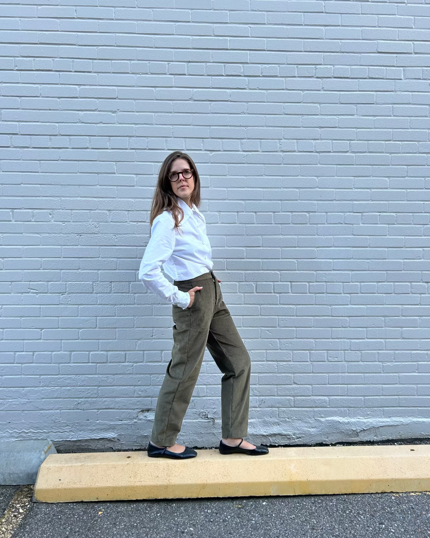 Inspired by vintage "cowboy shirts" we've made this Japanese cotton shirt with pearl snaps. Its a simple slim fit, with cuffed sleeves and an extra big collar. Styled here with our Heather Pants. Since the fit is slim, we suggest to size up if you are broad shouldered .