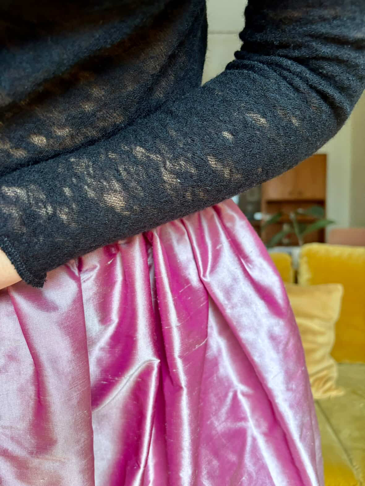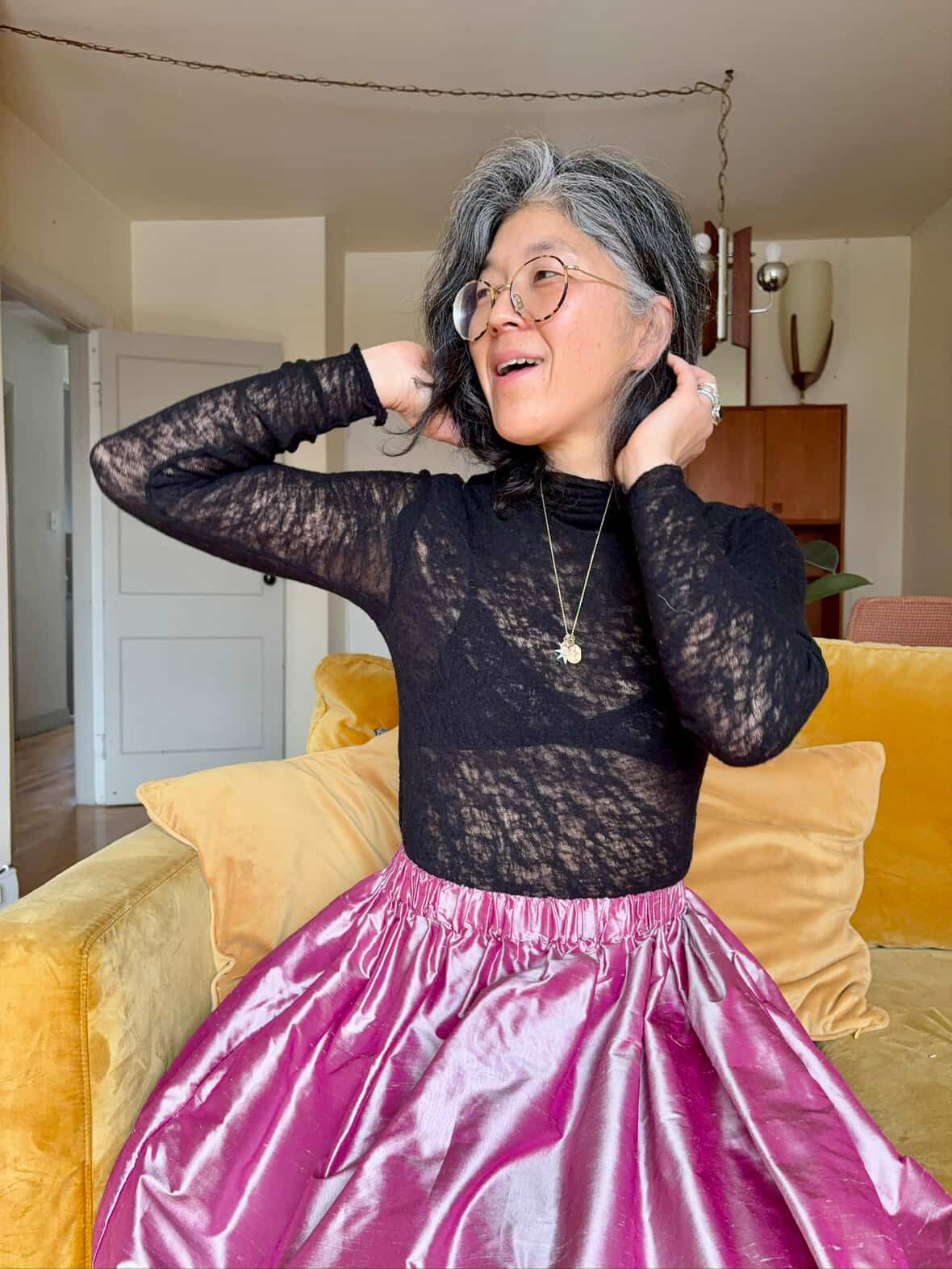 Our turtleneck is long and sleek, perfect for layering. We found this amazing wool fabric from Italy, woven like a spider web, so delicate it is beautiful and tough at the same time, it is quite sheer and a great ensemble piece, it comes in cream or black. This item will need to be hand washed in cold water. We also made this turtleneck in our favorite Hemp/organic cotton jersey in cream. When the weather changes we wear this turtleneck all season. (The hemp cotton fabric is pre-washed to avoid pesky shrinkage.)
